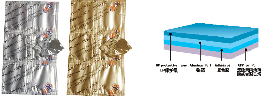 內(nèi)層用PE或CPP膜,具有良好的熱封性,使包裝后的藥品有良好的密封性,延長(zhǎng)了藥品的保質(zhì)期。
